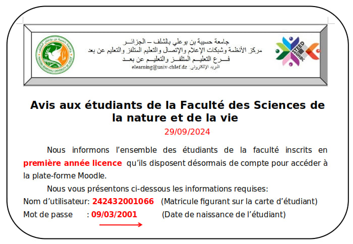 Pour Accède Au Moodle Click iciPar zouatenia mhamed / 06/11/2024 https://moodle.univ-chlef.dz/fr/course/index.php?categoryid=37